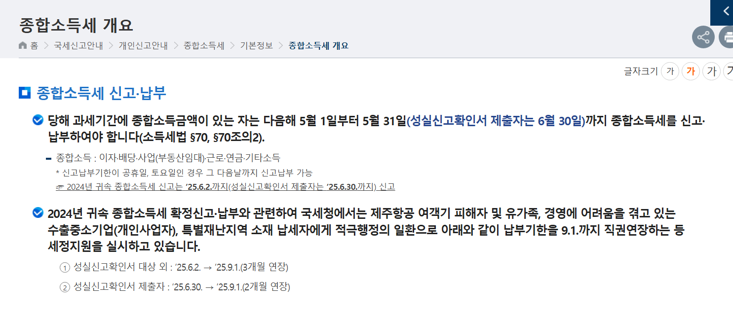 - 연장 가능성: 특별한 사유(천재지변, 시스템 장애, 정부 결정 등)가 있으면 국세청이 일부 기한을 연장할 수 있습니다.