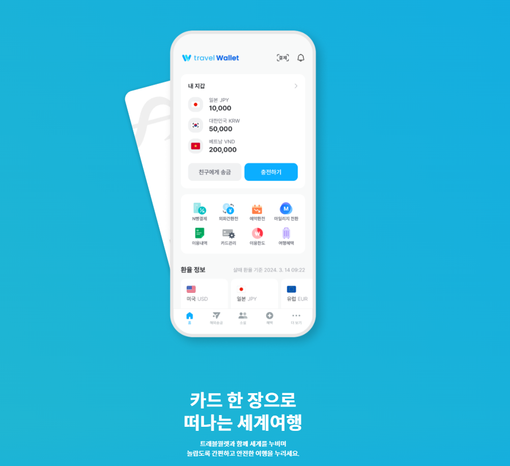 트레블월렛은 복잡한 환전 과정을 줄이고, 여행 중 현금 소지 위험을 최소화한다는 점에서