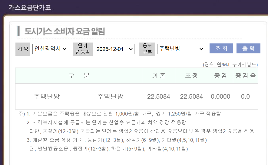 요금 단가와 계산 기준은 한국가스공사 및 각 지역 도시가스 공급사의 요금 체계를 따릅니다.