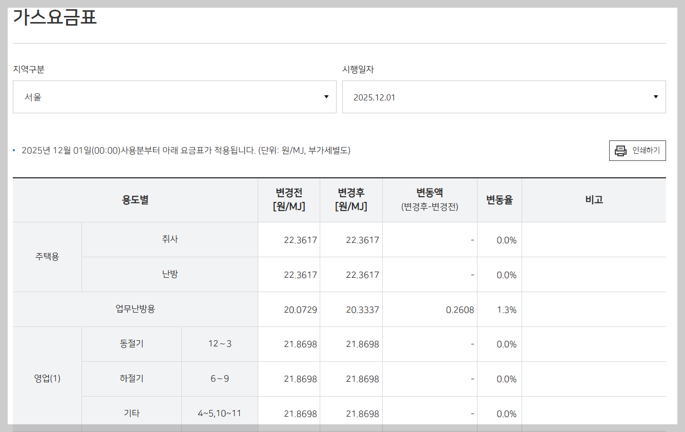 겨울철처럼 난방 사용이 많아지면 사용량이 급격히 늘어나 요금도 함께 상승합니다.